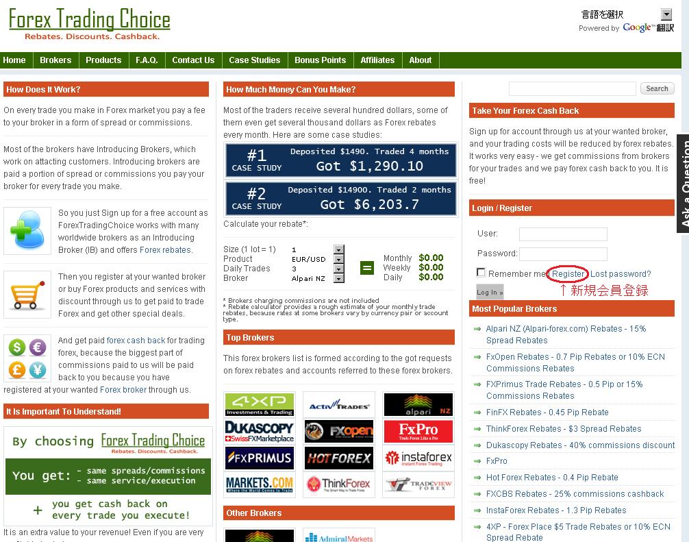 forextradingchoiceは使用している海外FXブローカーから、スプレッドの数%のキャッシュバックを得ることが出来るサービスです